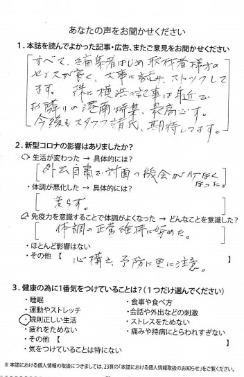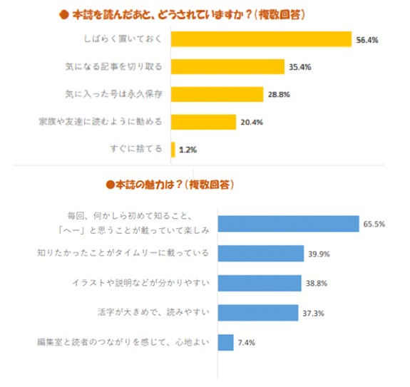 雑誌を受け取った方に「次からも読みたい」と思っていただけるクオリティを維持するため、もも百歳では毎回読者から「よかった記事」の情報収集や「最近の関心事は?」というアンケート調査を実施しています。最近の傾向として「親の相続で苦労したので、子供にはスムーズな相続をお膳立てしたい」「健康維持の為に積極的に運動している」等のアクティブかつ自立・自律的な方が増えています。それらの読者の傾向や関心事に寄り添いながら、シニアライフの情報を豊富に蓄積しているからこその「半歩先の啓蒙」というのが編集方針です。
