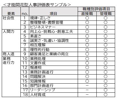 3. 能力評価は、人間力とスキルをバランスよく評価するように項目を設定する。